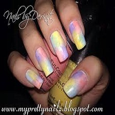 Step 3: Using a toothpick, swirl the two colors together in where they meet. The area where they mix will determine the length of the graduation. So if you want a long graduation, mix a bigger section of the colors, if you want less of a fade, just mix them together a tiny bit.
